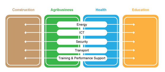 AIDA focuses on interdependent projects. Its transactions are triggering the development of downstream impact activities, in agriculture, healthcare and education, to name a few, generating future pipeline deals for itself and its strategic partners. AIDA seeks projects where technology will enable 21st century solutions and leapfrogging the current infrastructure gap.